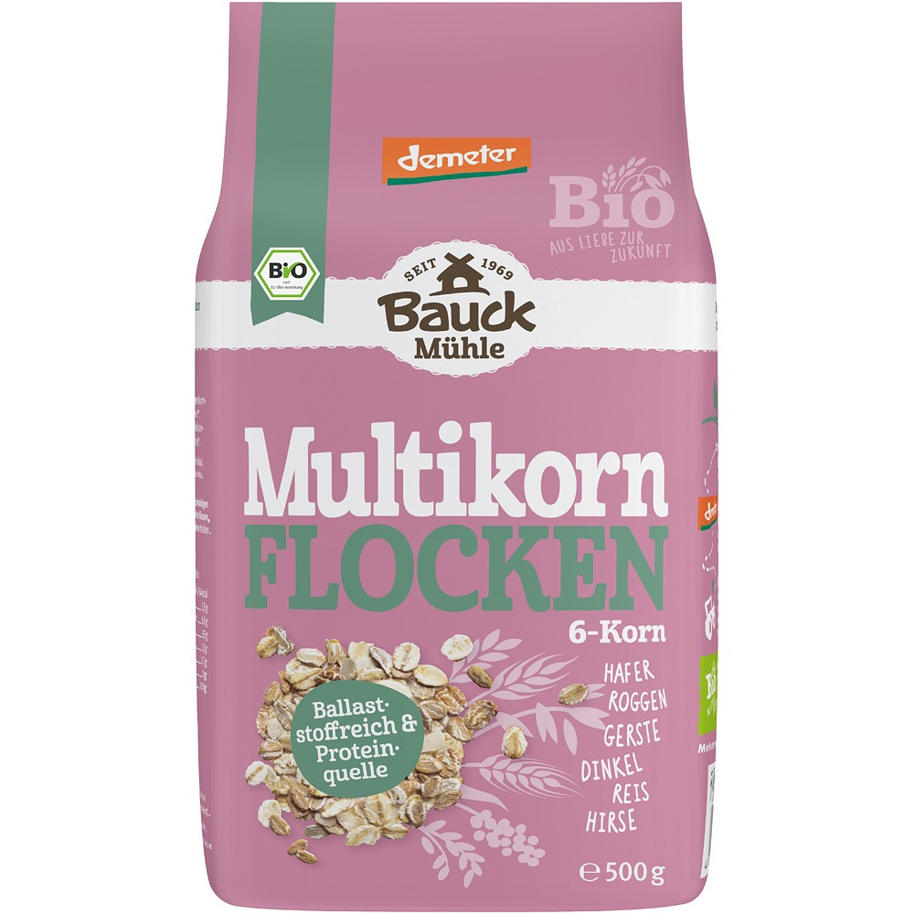 Ce mic dejun poate fi mai sanatos pentru o noua zi decat o portie delicioasa de fulgi calzi ? Tocmai de aceea echipa de la moara Bauck a venit cu acest produs din 6 cereale ( ovaz, secara, orz, orez, spelta si mei), toate ingredientele provenind din agricultura ecologica si agricultura ecologica Demeter. Materia prima este obtinuta din plantatii regionale, astfel putem contribuie la sustenabilitatea agriculturii ecologice locale. Produs bpgat in fibre si sursa de proteine.