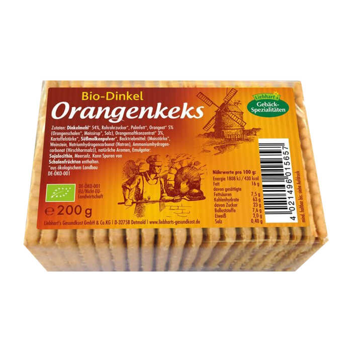 Biscuiti bio cu alac si portocale, 200g Liebhart`s