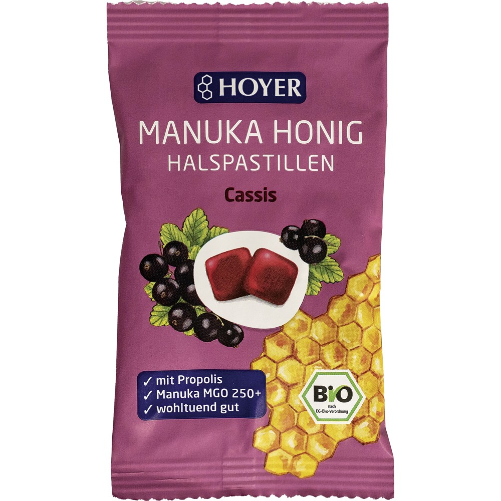 Aceste bomboane de la Hoyer sunt un adevarat leac sanatos si delicios pentru un gat cu probleme si suferind, caci continutul minim de metiglicoxal (250 mg) din mierea de manuka, propolisul si sucul de coacaze va rasfata vocea si alina durerea. Metiglicoxalul (MGO) actioneaza importriva actiunilor virale.