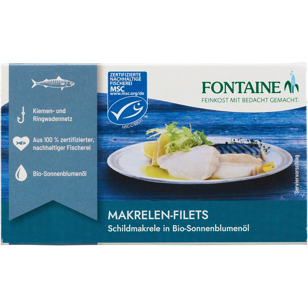 Ingrediente: file de macrou ( Trachurus murphyi) (72%), ulei de floarea-soarelui*(27,5%), sare de mare. *provin din agricultura ecologica, DE-OKO-001.