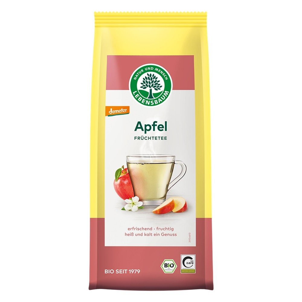 Merele bio coapte au asteptat sa fie sarutate in ceasca si sa-si dezvolte gustul fructului natural. Aroma sa fina se reflecta in culoarea delicata a culorii galbene. Ceaiul nostru de mere are nevoie doar de un singur ingredient: mere! Selectam cu grija soiurile si zonele de crestere. De ani de zile, am ales fructele cultivate in agricultura biodinamica Demeter din regiunea Lacului Constance. Bucurati-va de acest ceai rafinat in simplitatea sa - fierbinte sau rece.