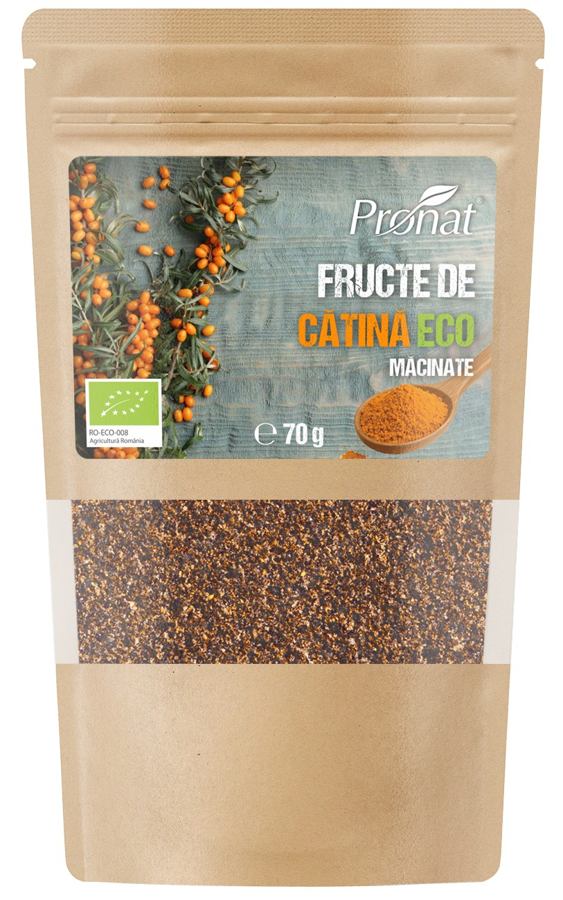 Ingrediente: 100% fructe de catina de mare* (Hippopae rhamnoides L.) macinata din fructe întregi deshidratate.