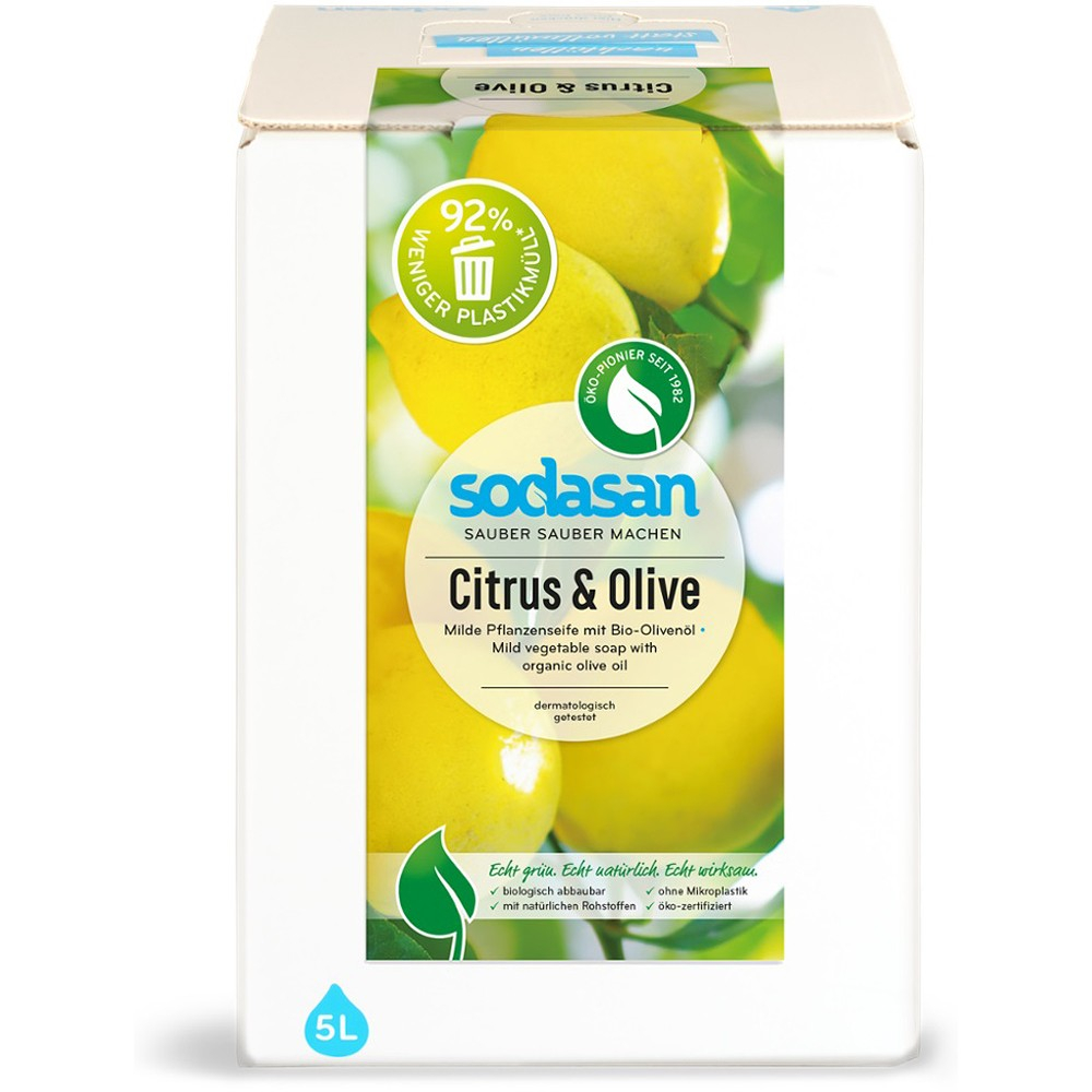 Sapunul lichid cu lamaie si masline bio Sodasan ofera spuma delicata de ingrijire ofera mainilor si senzatie de ingrijire a pielii. Notele citrice fructate din uleiuri esentiale asigura o experienta de ingrijire racoritoare. Odata cu sapunul vegetal organic de la sodasan, constientizarea mediului si a corpului devine una. Ingrijirea pielii in tendinta ecologica! Sapunul lichid asigura elasticitatea crescuta a pielii si imbunatatirea barierei de protectie a pielii. Si toate acestea fara utilizarea substantelor chimice, deoarece calitatea organica a sapunurilor sodasan asigura o compozitie ecologica si prietenoasa pielii la cel mai inalt nivel