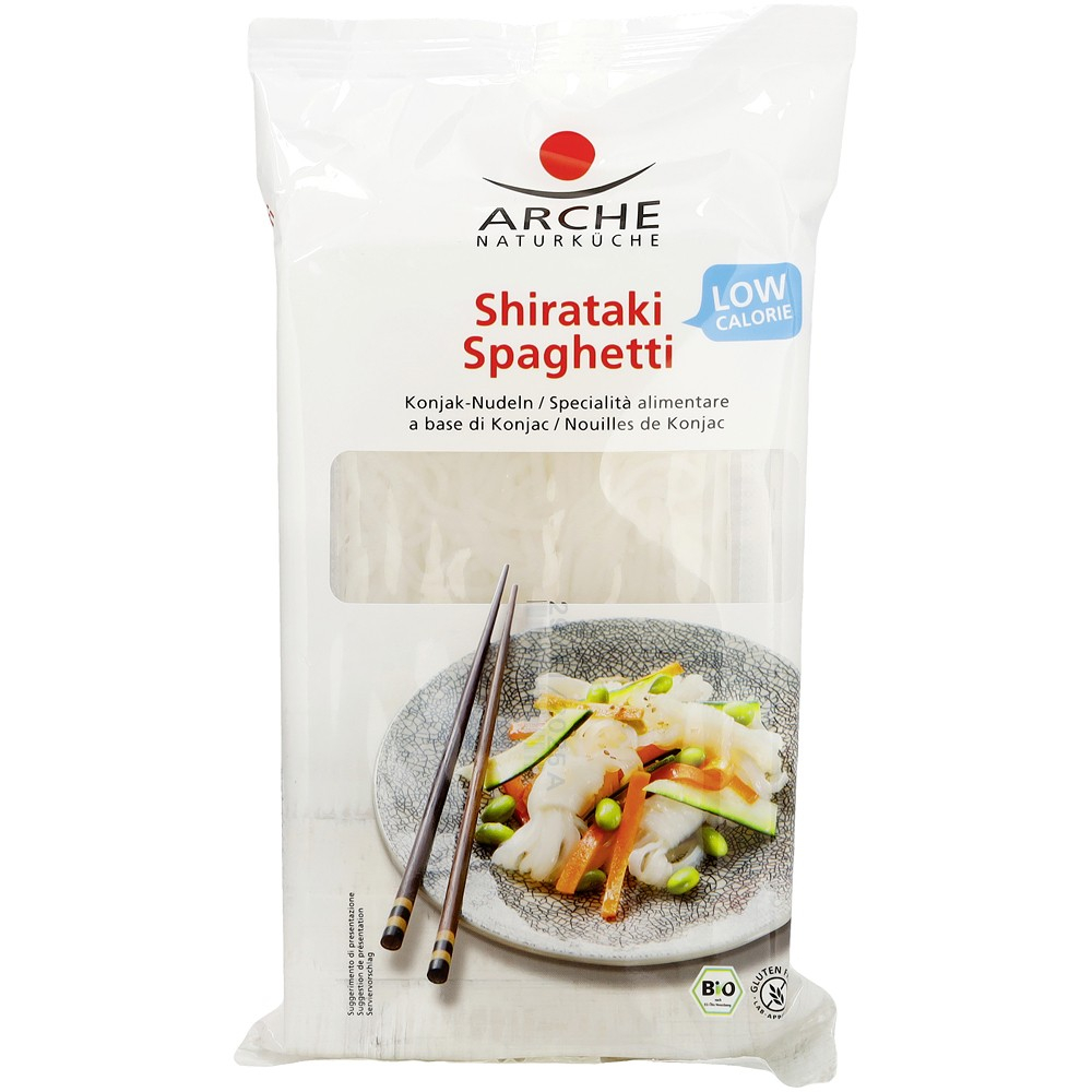 Acessti taietei traditionali de la Arche sunt obtinuti din planta konjak (limba diavolului) si este un ingredient apreciat si valorificat cu precadere in bucataria asiatica. Gustul lor neutru le face extrem de versatile si pot fi folositi intr-o sumedenie de preparate. Taiteii se obtin din radacina de Konjak care poate ajunge pana la marime de 25 de centimetri. Aceasta este macinata, pudra de de konjak este amestecata cu apa. obtinunandu-se astfel foaia de taieteii.